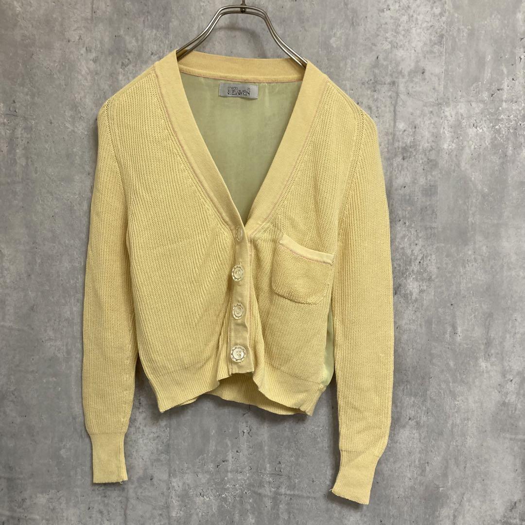 - 【HEAVEN】ニットカーディガン【S】イエロー レース 春カラー きれいめ