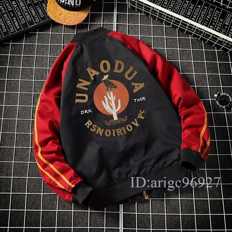 > J112★カジュアル ジャケット スタジャン スカジャン メンズ アウ ジャンパー ブルゾン ター 春秋 個性 アメカジ [M~3XL]選択可 ブラック