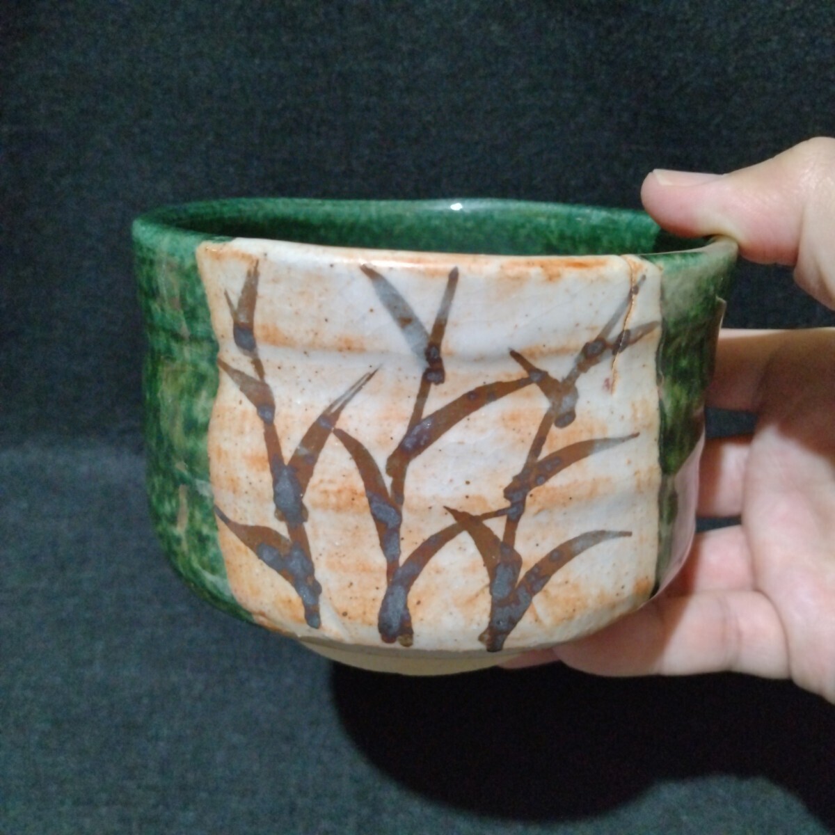- 本物保証 北大路魯山人 織部 草図 縁にヒビ状の窯傷 箱なし 本物返品OK 241114−3