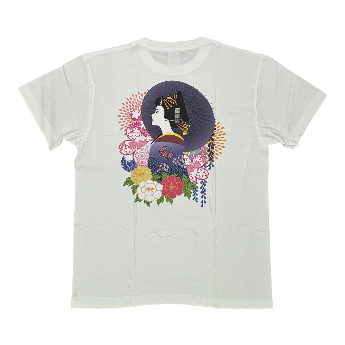 - [江戸てん]1点もの Tシャツ 背面に「おいらん」(前面は無地) 綿100% 捺染プリント 白 M