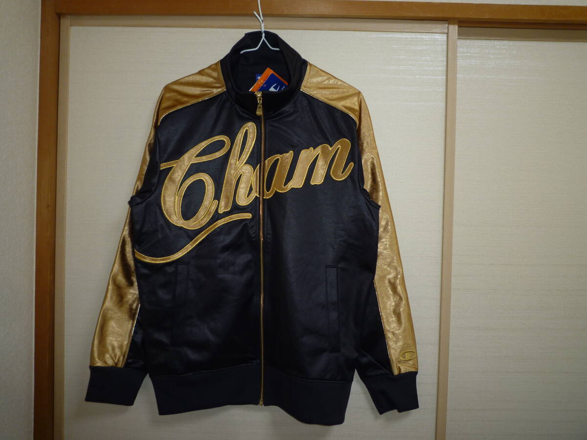 - チャンピオン レザー調 ヒートマックス ジャージージャケット 黒×金 Sサイズ