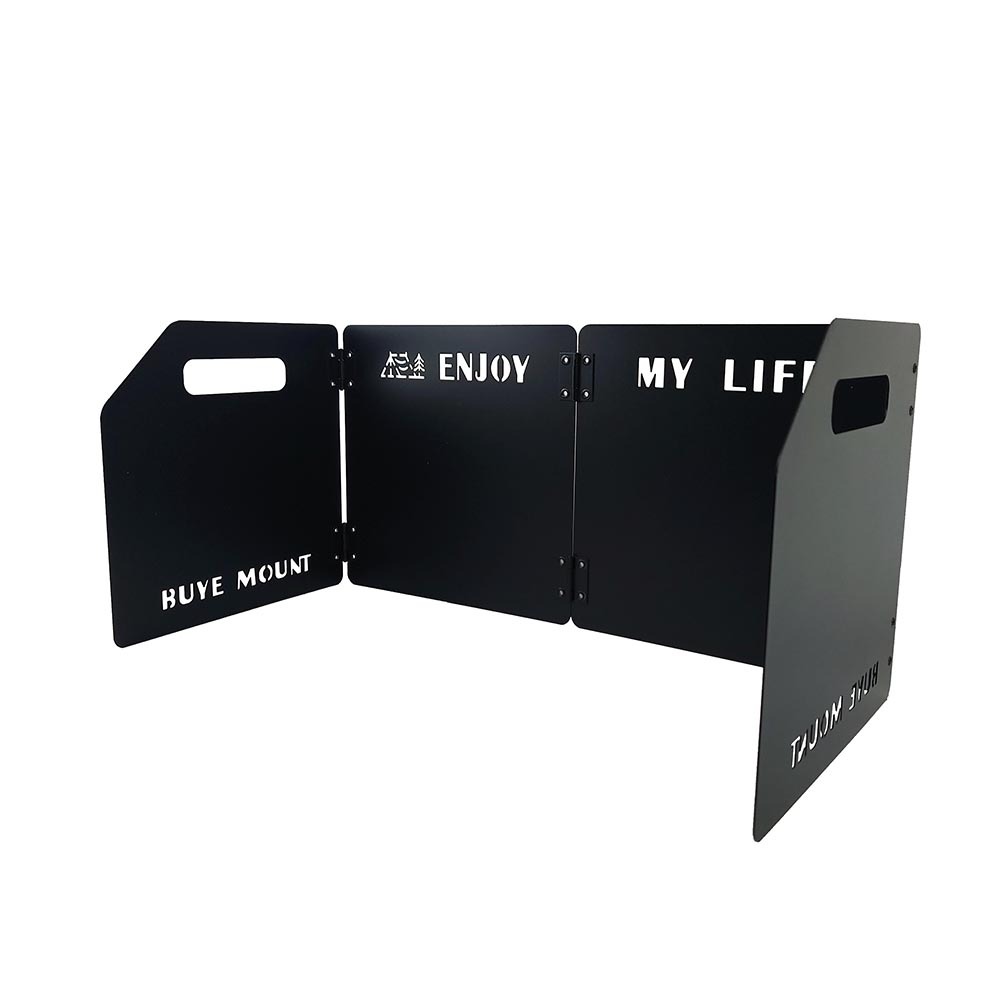 - アウトドア ウインドスクリーン 折り畳み式 4つ折り 風除け 安定感 持ち運び キャンプ BBQ ブラック 黒