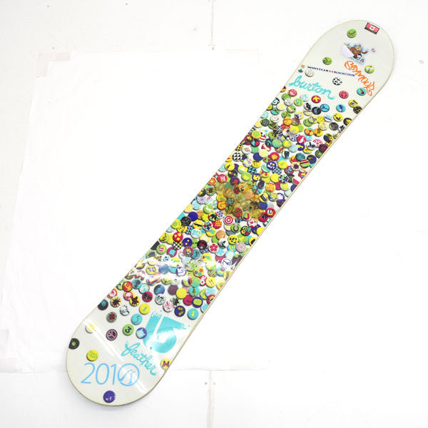 > ★ BURTON バートン 2010 スノーボード スノボ 板 缶バッチ柄 ホワイト ミント 153cm 中古 (0220506173)