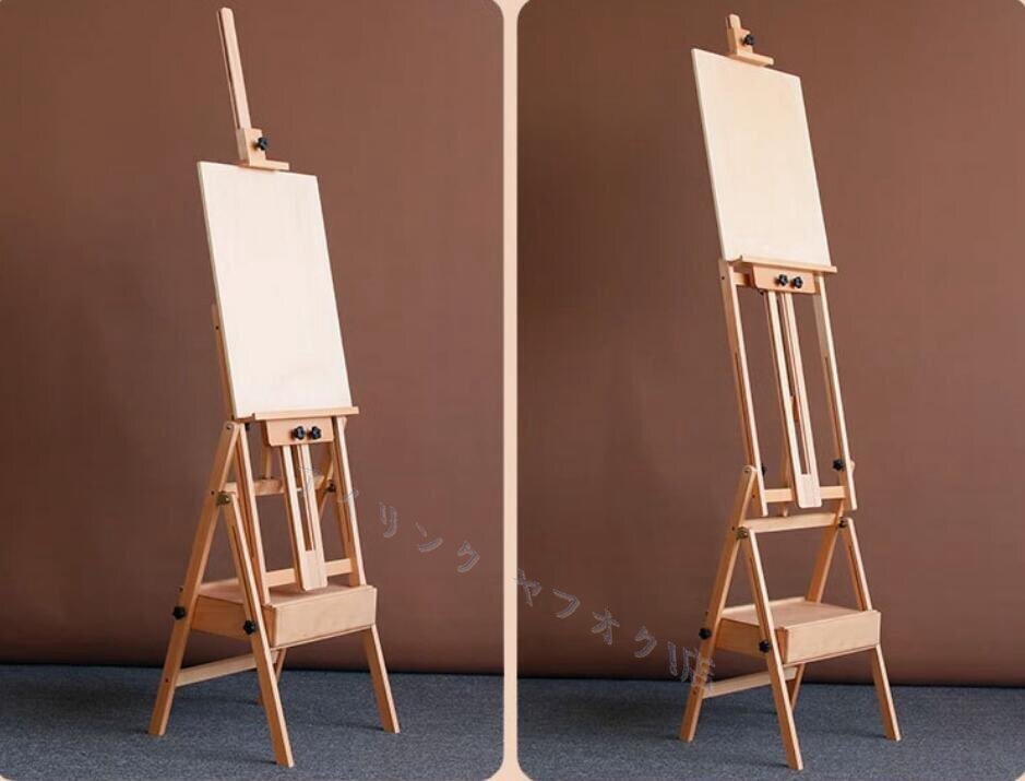 > ☆新品イーゼル 木製 イーゼルスタンド 前傾式 角度を調節でき 引き出し付き折りたたみ収納 高さ調節可能 高さ122-207cm H型フレーム
