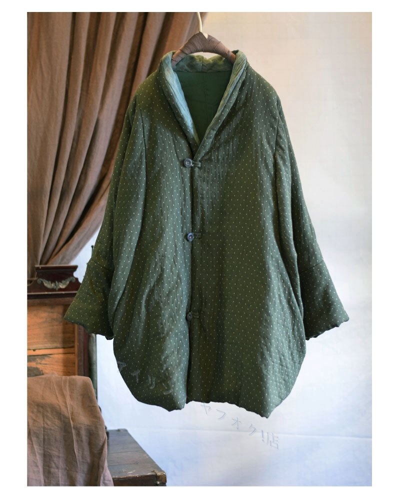 - ☆新品袢纏 中綿 ドット柄 手縫い手芸 コート 羽織物 カーディガン ゆったり 綿100% アンティーク風 暖かい グリーン