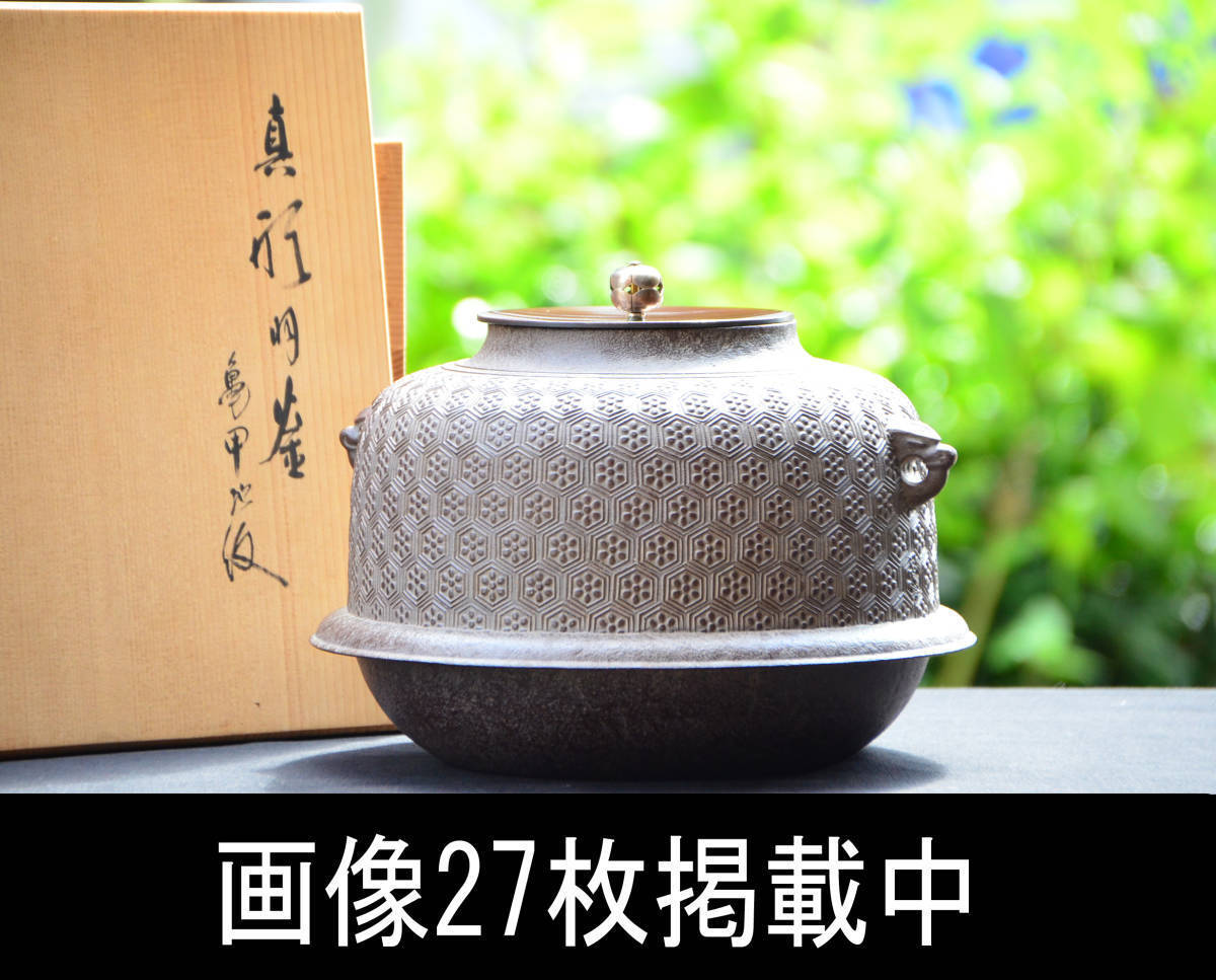 高橋敬典 人間国宝 亀甲地紋 真作保証 未使用品 共箱 炉釜 茶道具 昭和期 画像27枚掲載中 旧家蔵出し 当時物