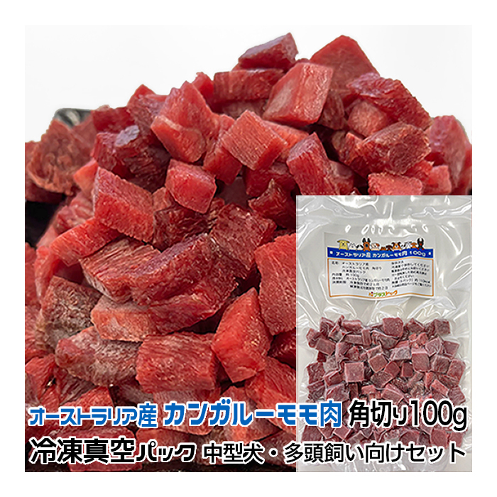 > 犬用・猫用 オーストラリア産 カンガルーモモ肉 1kg 角切り100g×10パック 冷凍真空パック【クール便発送】犬 猫 手作りごはん