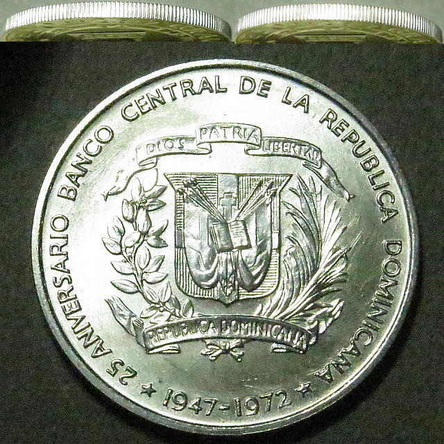 - ドミニカ共和国 1972年 昭和47年 中央銀行創立25周年 1ペソ銀貨 g4903