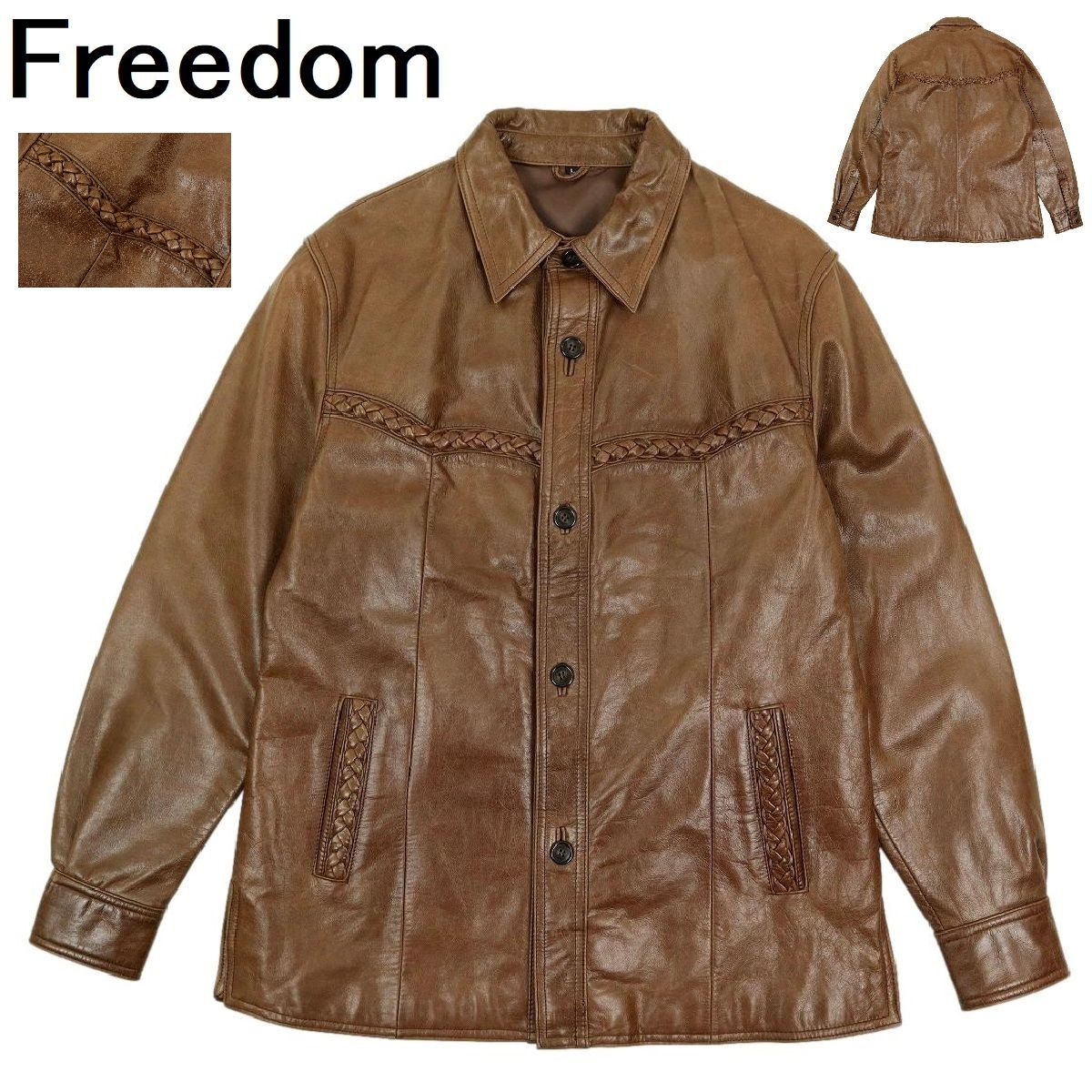 > 【B3216】【編込み】FREEDOM フリーダム レザージャケット レザーシャツ 牛革 サイズL