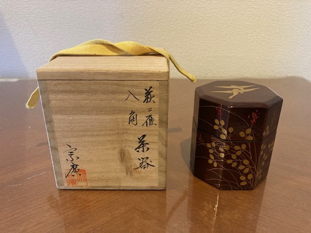 - ■送料無料■ 茶道具 棗 萩二雁 八角 宗廣作 (中古品)