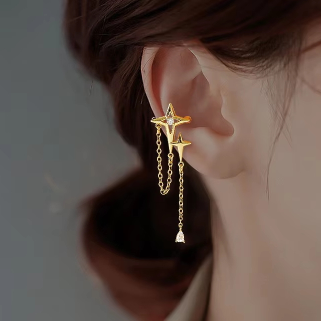 - L10 レディースイヤーカフ ゴールド チェーンスタイル スターイヤカフ クロスデザイン イヤリング ダイヤ風石ノンホールピアスアクセサリー