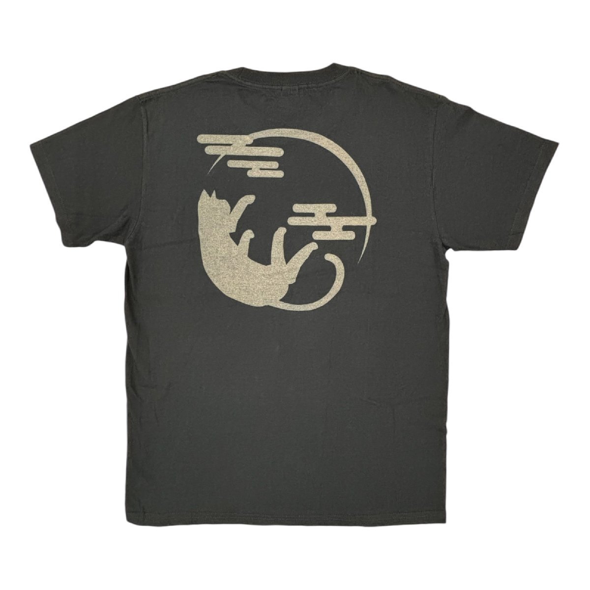 - [江戸てん]1点もの Tシャツ 6.0オンス 和柄 メンズ 抜染 背中に柄 「三日月猫」 (前面は柄無し) 黒 L
