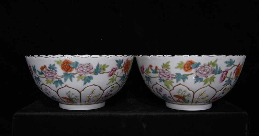 - ◆旧家蔵出◆古美術 中国古玩 大清乾隆年製款 粉彩 十二花神卉紋碗―對 古賞物 骨董 時代物 A06