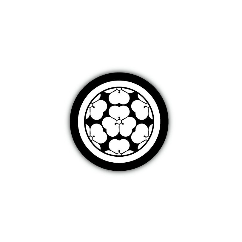 - 戦国武将 家紋 缶バッジ 44mm 1個 長曾我部元親『七つ片喰』黒フチ 推しグッズ 弥三郎 缶バッチ 雑貨 戦国グッズ 武将グッズ