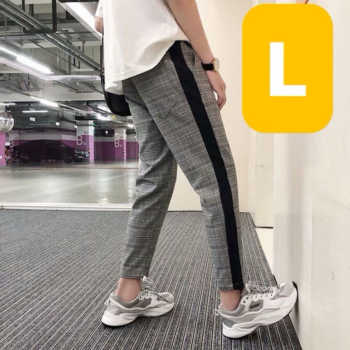 - ラインパンツ チェック ボトムス トレンド 渋谷 ストリート オルチャン 人気 ユニセックス メンズ レディース ネイビー L