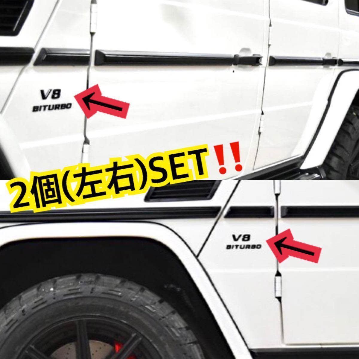 - メルセデスベンツ V8BITURBO 黒 エンブレム 2個セットYWQ851