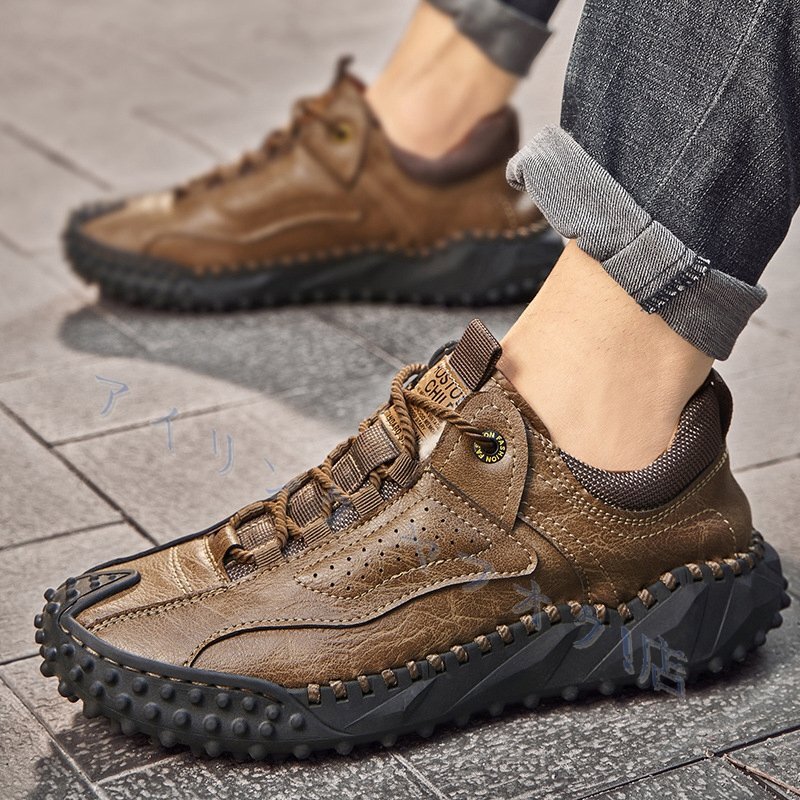> ☆新品ウォーキングシューズ 紳士靴 メンズ レザーシューズ 本革 ブーツ スニーカー アウトドア軽量通気 キャンプ サイズ選択可 カーキ