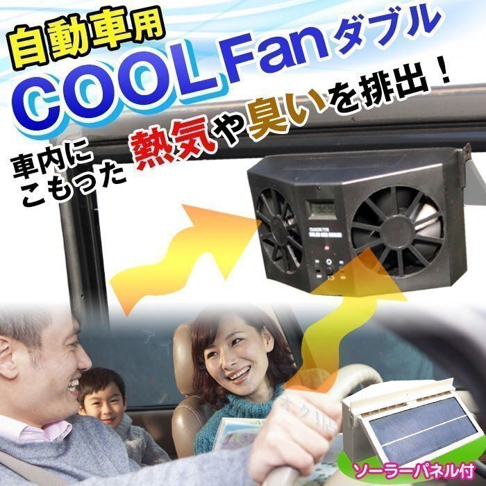 - 新品 クールファンダブル 車内用 換気用扇風機 換気ファン カー用品 自動車用 換気扇 充電式 冷房 効果 排熱 駐車場 熱中症 2色選択可