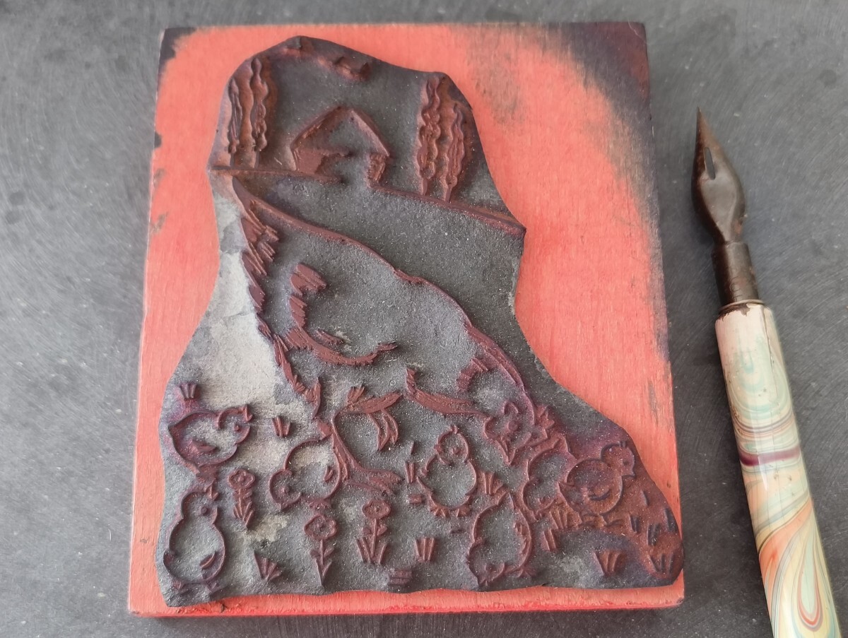 - 大 鶏 雛 放し飼い 草原 木 スタンプ ニワトリ めんどり フランス アンティーク ヴィンテージ ハンコ 農家 家畜 ペット 家