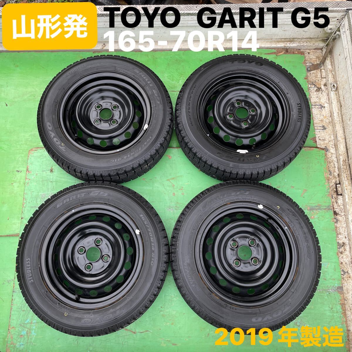 > 山形発☆7,980円激安商品☆Toyo/GARIT G5/165-70R14/鉄ホイール付/年式:2019年/タイヤ溝:7〜8分山/STUDLESS/4穴/発送引取OK/
