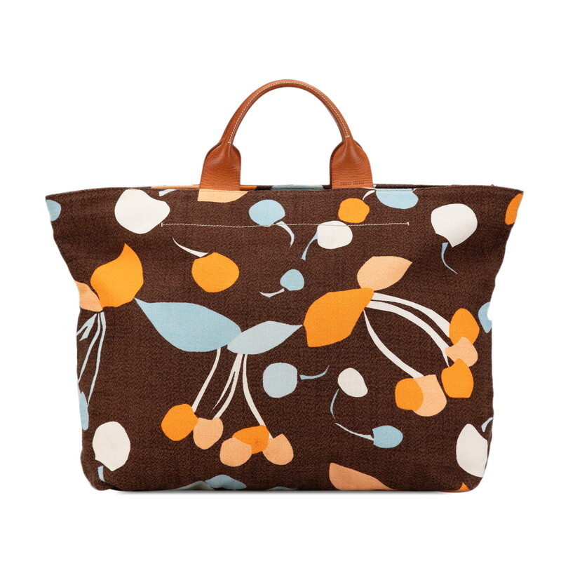- ミュウミュウ ハンドバッグ トートバッグ ブラウン オレンジ キャンバス レザー レディース MIUMIU 【中古】