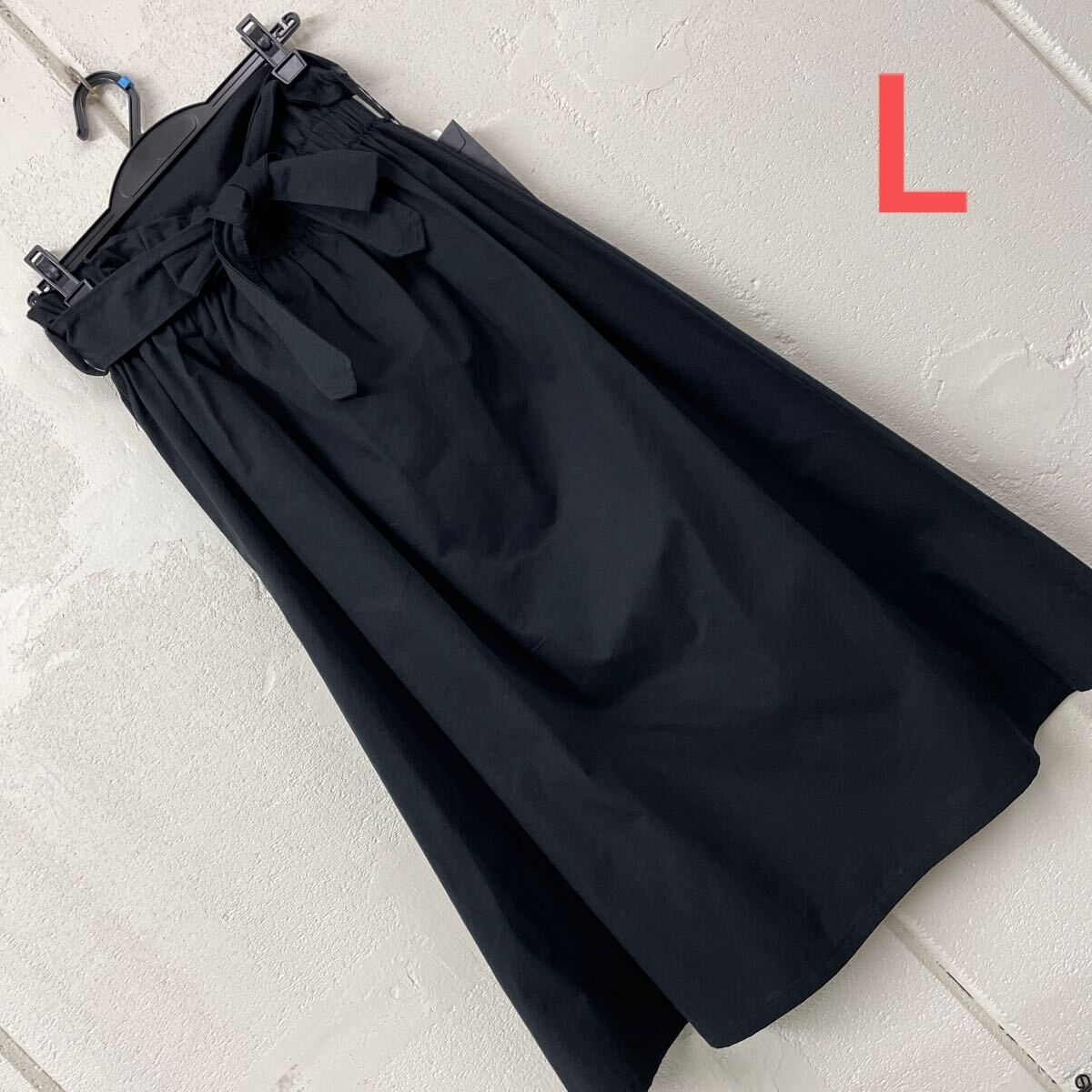 - Lサイズウエストリボンベルトスカート黒