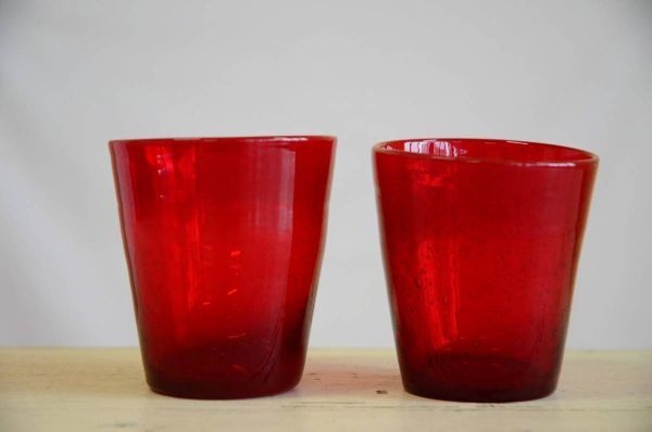 ご落札者様のために誠心誠意ご対応させていただきます吹きガラス コップ 2客 赤 気泡 レトロ ヴィンテージ 縦9cm 直径8cm 画像10枚掲載中