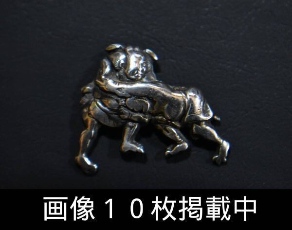 - 前金具 力士 相撲図 銀製 煙草入れ金具 彫金 金工 細工 時代金具 骨董 希少 蔵出し