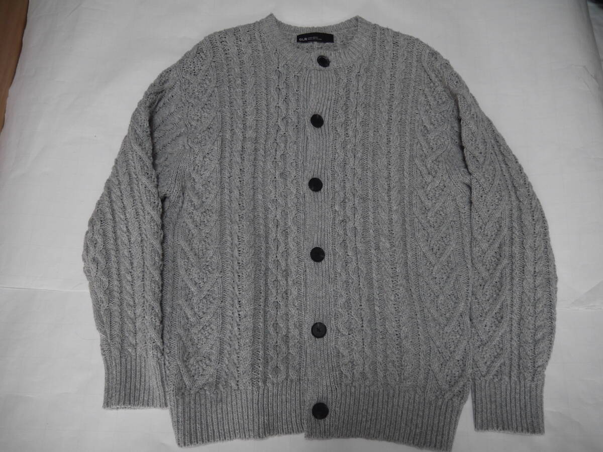 > 【美 品】ユナイテッド・アローズ 厚手 ケーブル編み クールネックカーディガン 秋冬物 NAVY サイズM GRAY