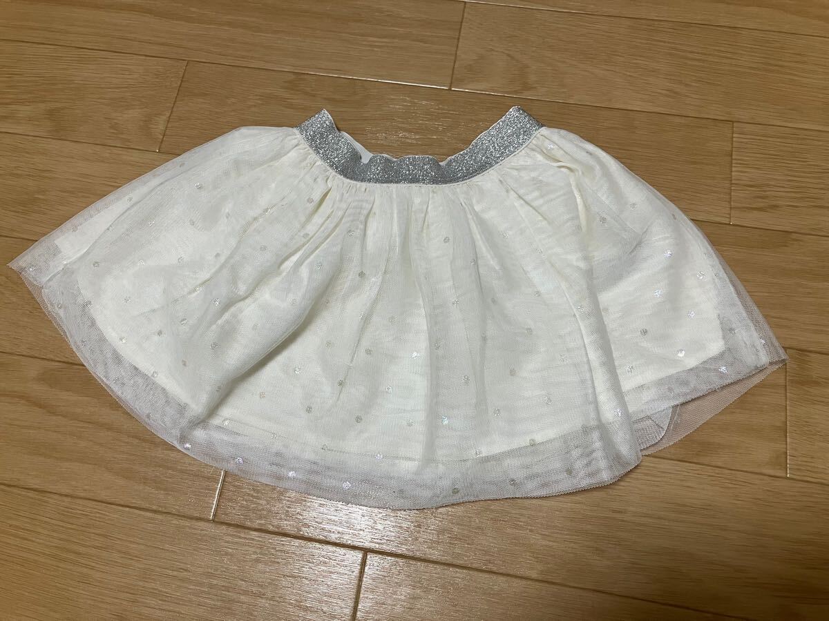 - USED★babyGap【ドット柄シフォンスカート】白×シルバー/18-24month(90cm)