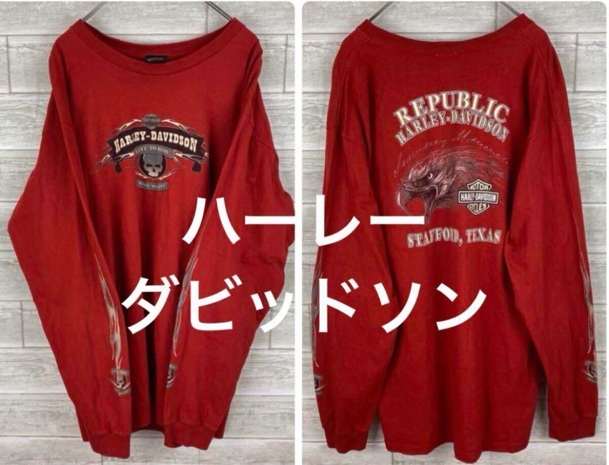 - HARLEY-DAVIDSON 赤 長袖 Tシャツ ハーレーダビッドソン ロンT ハーレーダビッドソン 長袖Tシャツ 古着