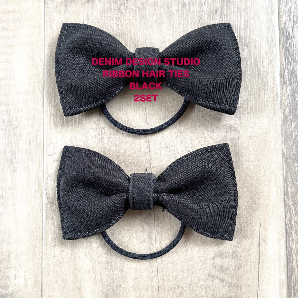- 【ハンドメイド】ブラックデニムリボンヘアゴム リメイク レディース 黒 ヘアアクセサリー ブラック 2個セット