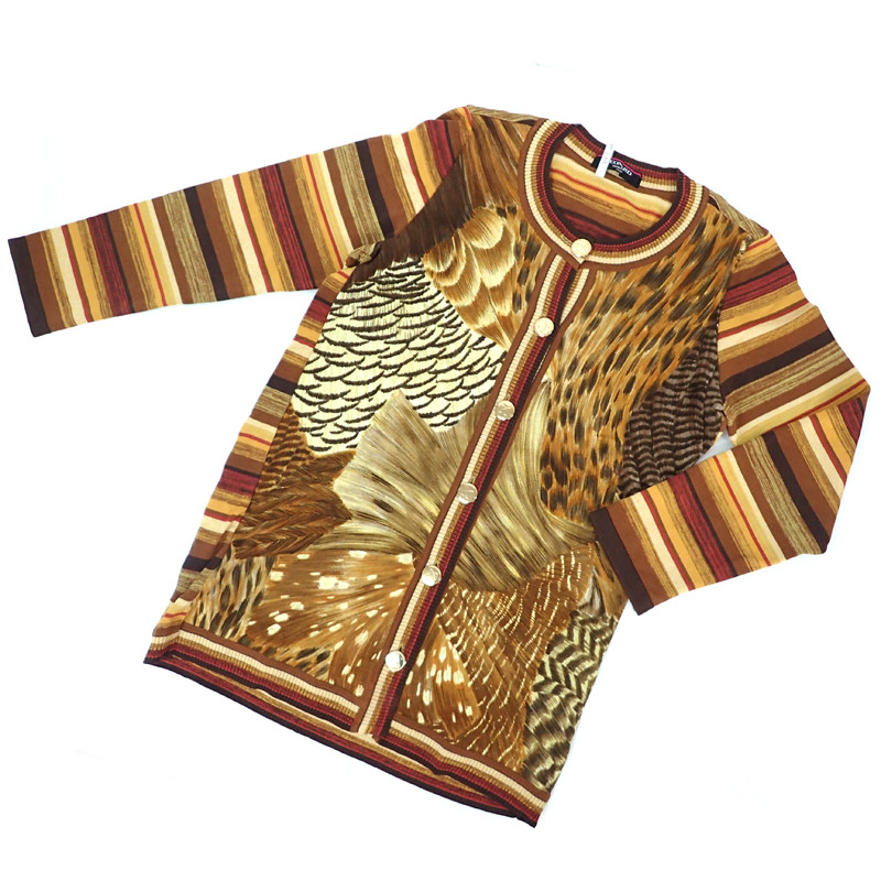 - 1OP LEONARD レオナール レディースカーディガン M 金ボタン アニマル柄 イエロー系マルチカラー