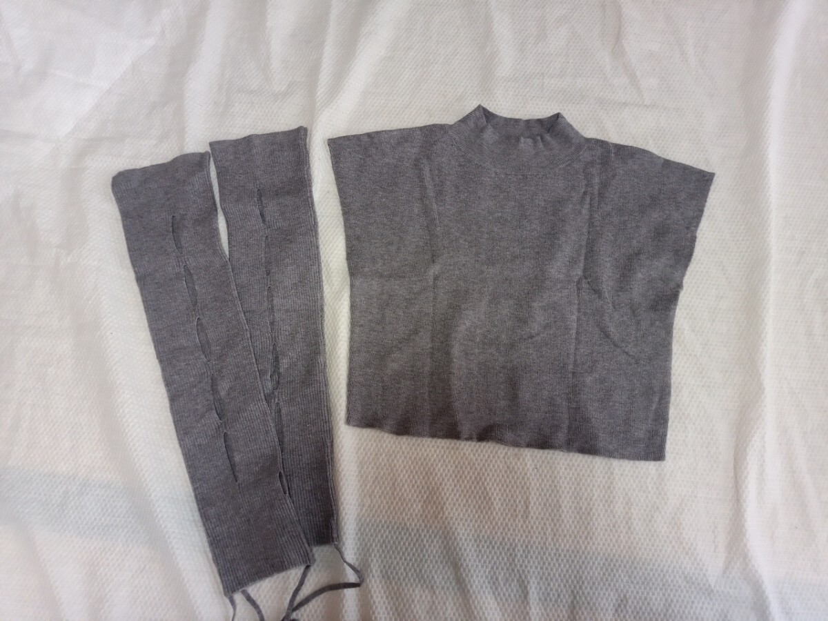 - 10051 ★★アームウォーマー付 ノースリーブニット グレー 未使用品