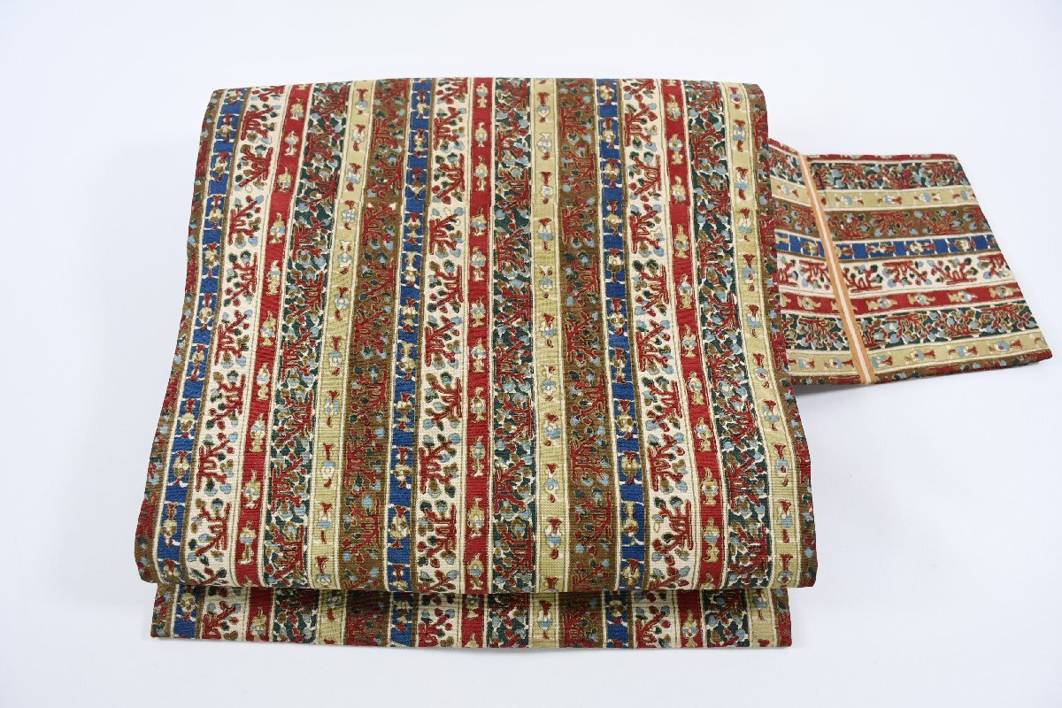 - 名古屋帯 アンティーク 縞模様 幾何学模様 帯丈340cm ★着物屋 ne-13229 桜庭呉服店