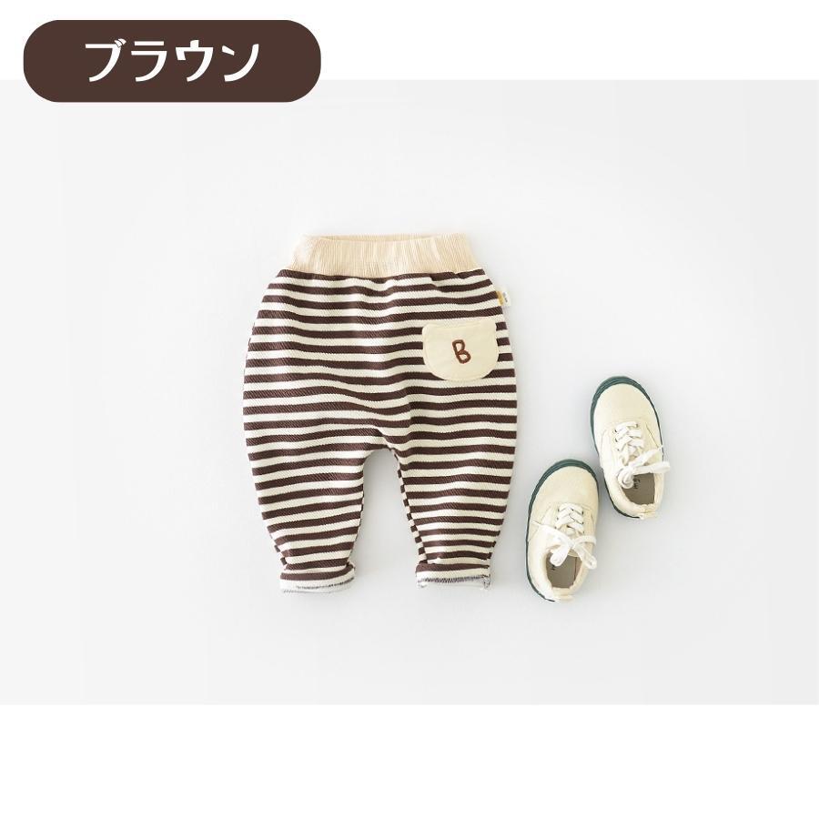 - ボーダー柄 ワンポイント ストレッチ素材 伸縮 コットンパンツ スウェット 長ズボン ゆったり ベビー服 綿 (100, ブラウン)