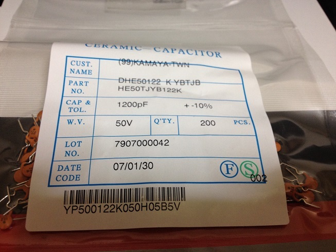 - 円板型セラミックコンデンサ HE50TJYB122K YB特性 50V 1200pF 10個入