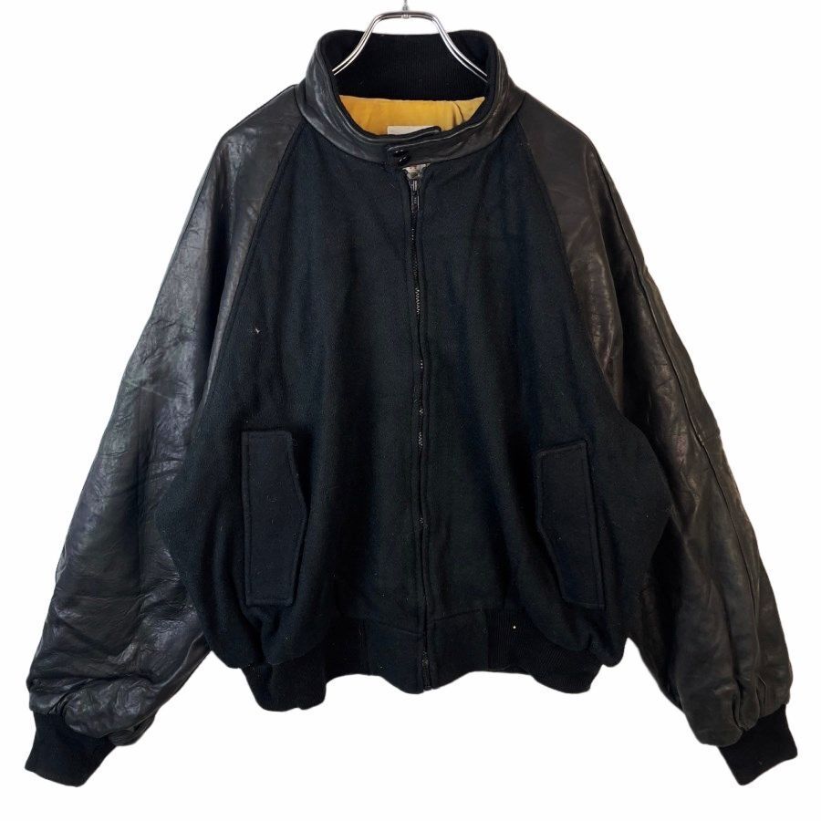 - USA製Rainbow Creations本革リアルレザー切り替えウールスタジャンブルゾン刺繍バックデザイン黒ブラック内ポケットvintage40813