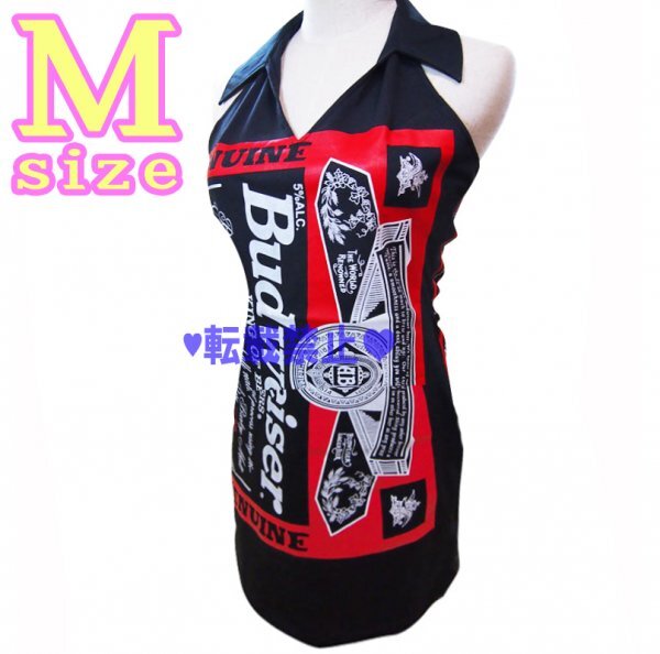 > 【高品質プリント 伸縮可能】バドワイザー バドガール 襟つき 黒 M ブラック ワンピース コスプレ 新品未使用! 【送料無料!!】