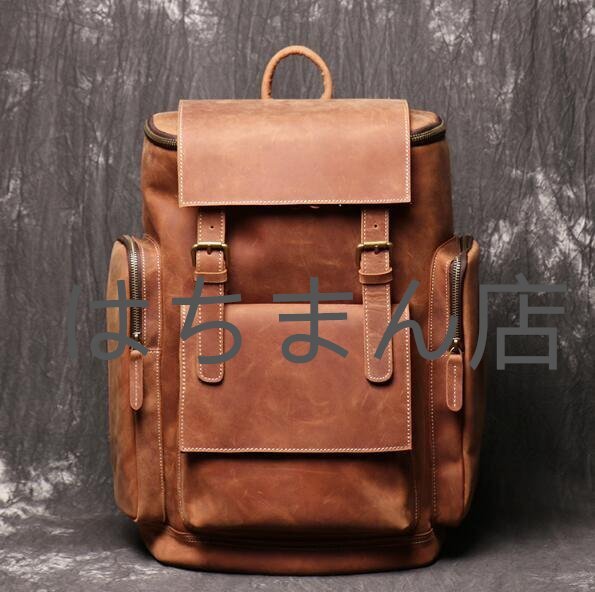 - 本革 リュックサック メンズ レザー バックパック レトロ リュック アウトドア 14インチPC対応 通勤通学 カジュアル兼用 ストア 未使用 現