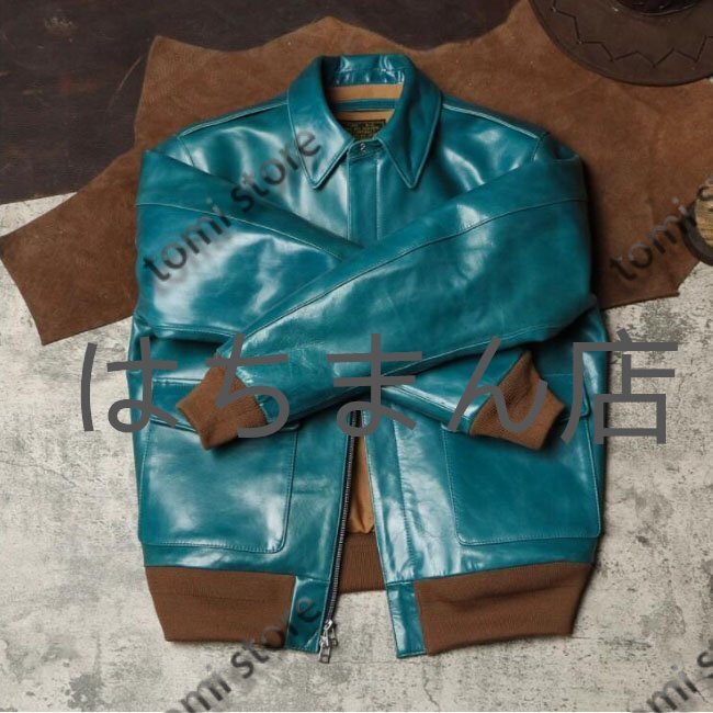 - 1.2mm ホースハイド 30's TYPE A-2 フライトジャケット ブルー インディゴ 藍染め タンニン鞣し 茶芯 レザー 馬革 サイズ選択可