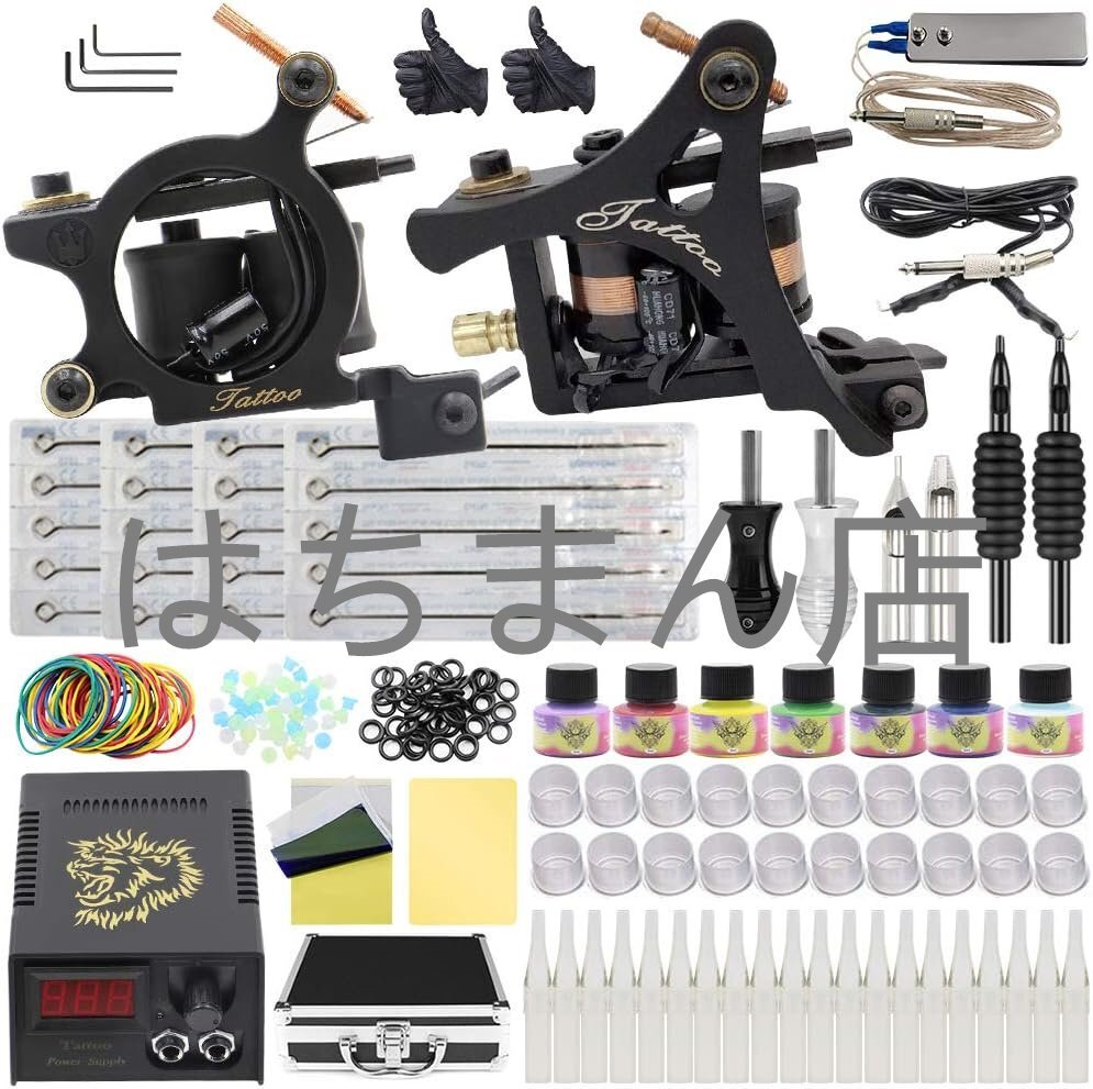 - コンプリートタトゥーキット - Yuelong タトゥーマシンキット コイル2個 タトゥーガン 電源付き フットペダル 顔料インク グリップ (2ガン)
