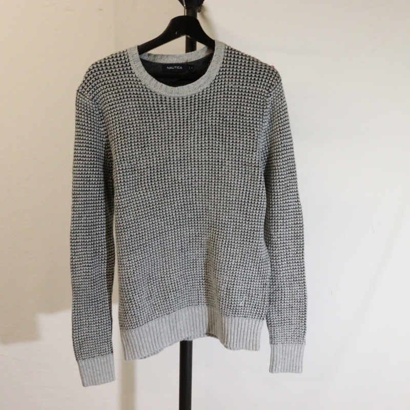 - r317 2000年代製 NAUTICA ノーティカ 総柄 コットンニットセーター■00s 表記Sサイズ グレー アメカジ ストリート サイケ ヒッピー 90s 80s