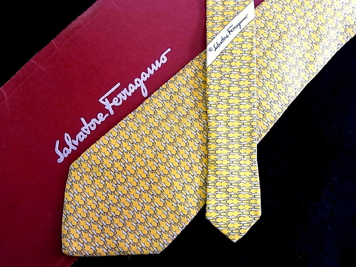> ♪今週の特売980円~♪2223♪状態並品【FERRAGAMO】フェラガモ【鮫 サメ 柄】ネクタイ♪
