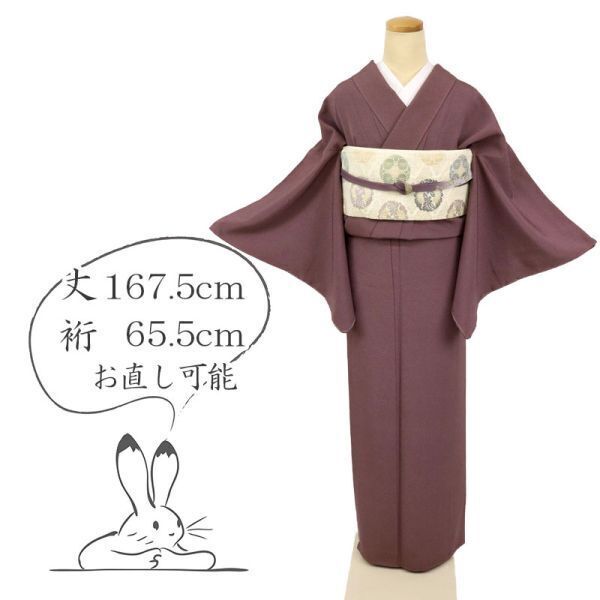 > 【伊勢型小紋】 小紋 長尺 袷 着物 年輪文様 無紋 赤紫 正絹 街着やお稽古に 11KP14