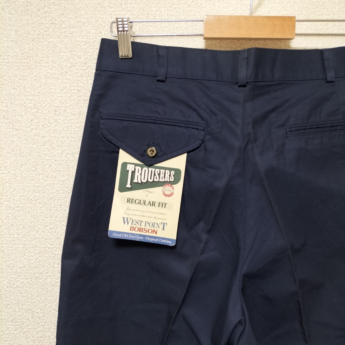 > 美品★OLD BOBSON ボブソン チノパン スラックス ワークパンツ ツータック ボトムス ネイビー 日本製 フラッシャータグ付 未使用 古着 USED