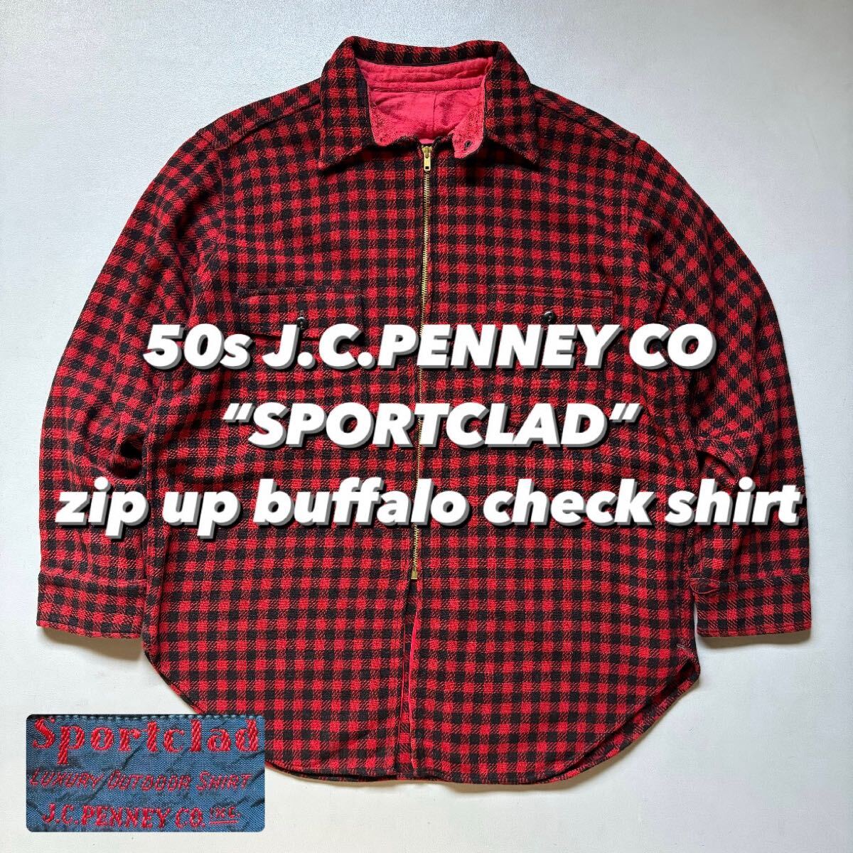 - 50s J.C.PENNEY CO “SPORTCLAD” zip up buffalo check shirt 50年代 ジェーシーペニー ジップアップシャツ バッファローチェック 長袖