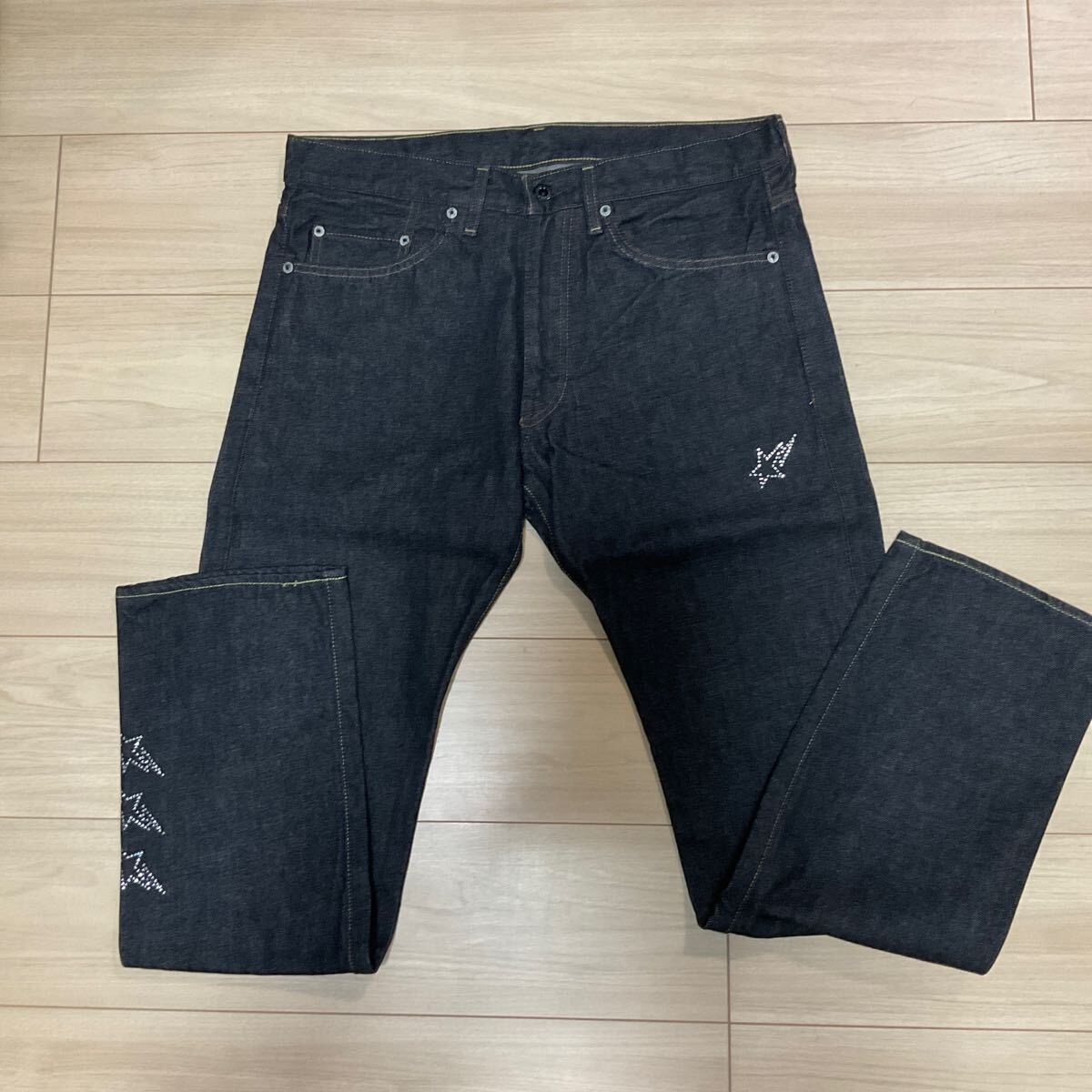 - 定価以下 新品未着用 アベイシングエイプ A BATHING APE スワロフスキー製クリスタルデニムパンツ CRYSTAL DENIM PANTS サイズM 日本製