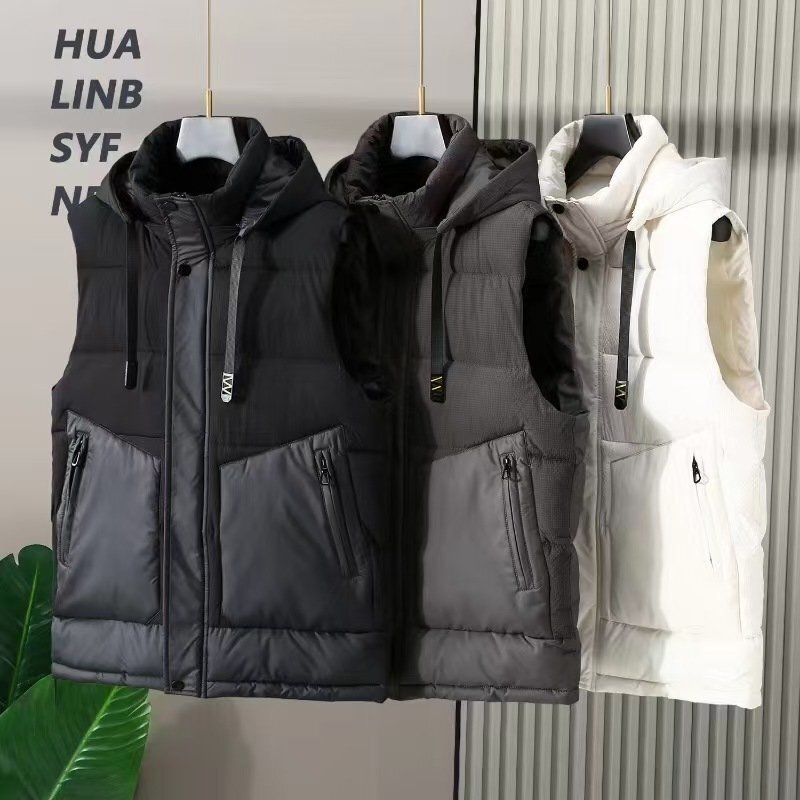 > LRM5111ダウンベスト 中綿ベスト メンズ フード付き アウター ダウンジャケット 暖かい 防風防寒 厚手 ゆったり 大きいサイズ おしゃれ秋冬