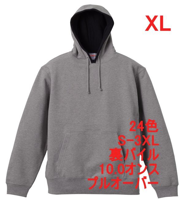 - パーカー XL ミックス グレー ブラック プルオーバー 裏パイル 10オンス 無地 スウェット 定番 フーディー パーカ A632 LL 2L 灰 灰色 黒